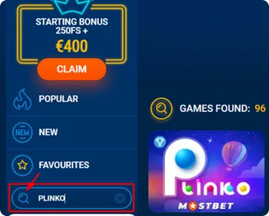 Przejdź do sekcji gier kasynowych i wyszukaj „Plinko”. Gra często znajduje się w kategoriach „Popularne” lub „Wygrane natychmiastowe”. Dodaj stronę gry do zakładek, aby szybciej do niej wracać.